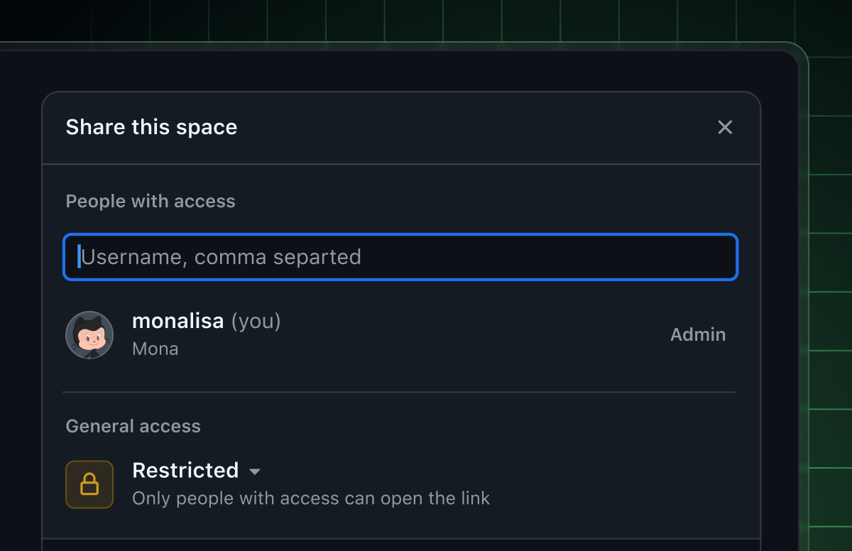 Additionally, GitHub is introducing individual sharing, letting a Space be granted to specific people across organisational lines — a quieter but meaningful shift that makes Spaces usable in cross-company work, contractor setups, and any project where collaborators don’t live under the same GitHub umbrella.