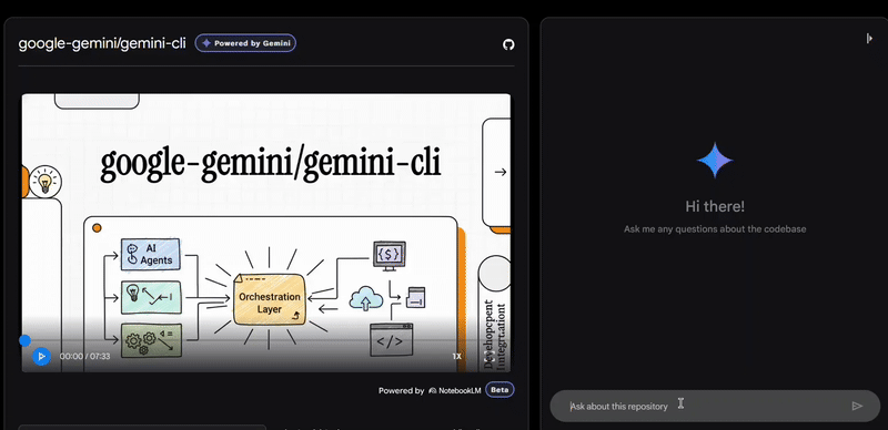 The user can ask questions against that structure — anything from “Where does this request get routed?” to, as in this example involving Google’s Gemini CLI, “Walk me through the full request-to-response path in this repo, citing files as you go.”